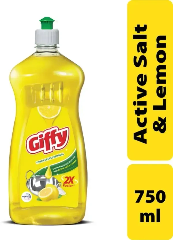 Giffy Concentrated Liquid Dish Wash Gel with Active Salt & Lemon Dish Cleaning Gel (Lemon, 750 ml)