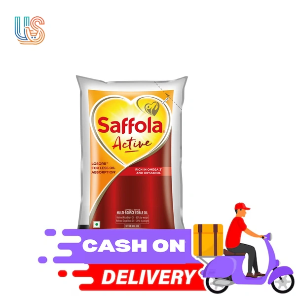 Saffola Active, Rich in Omega 3 and Oryzanol, Multi-Source Edible Rice Bran & SoyaBean Blended Oil Pouch (Mix Tel)