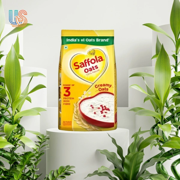 Saffola Rolled Oats, Delicious Creamy Oats, High Protein & Fibre, Healthy Cereal Pouch