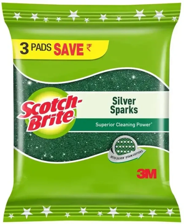 Scotch-Brite Silver Sparks Scrub Pad (Regular, Pack of 3)